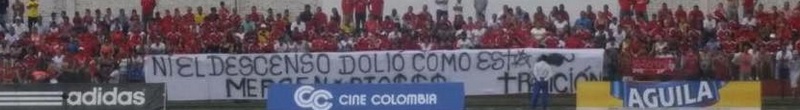El juego, como era de esperarse, resultó en los primeros minutos aburrido a la vista de los pocos presentes y muchos ausentes. La emoción estaba en la tribuna donde un trapo gambeteaba las embestidas opresoras de los que se han tragado al rojo, ¡Qué lo bajen! La orden fulminante de los tiranos. El trapo cayó como ha caído nuestra dignidad, pero su mensaje trascendió: “NI EL DESCENSO DOLIÓ COMO ESTA TRAICIÓN, MERCENARIO$”